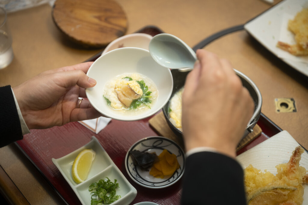 愛媛の新鮮な鯛を使った「鯛ぞうすい御膳」に、参加者のみなさん、笑顔がいっぱい!