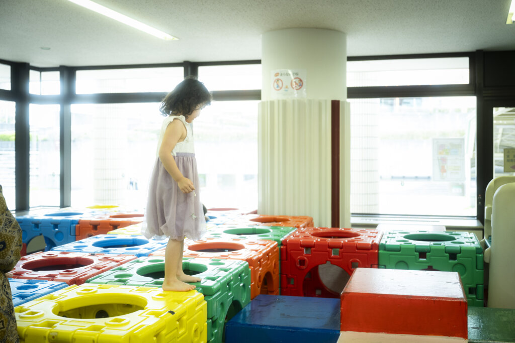 続いて訪問した松山市総合コミュニティセンターは、「文化・スポーツ・地域交流」が一体となった複合施設で、土日も開館しているため、子育て世帯の利用も多いです。スタッフに子どもたちが気軽に利用できる施設やイベント情報などを紹介してもらいました。