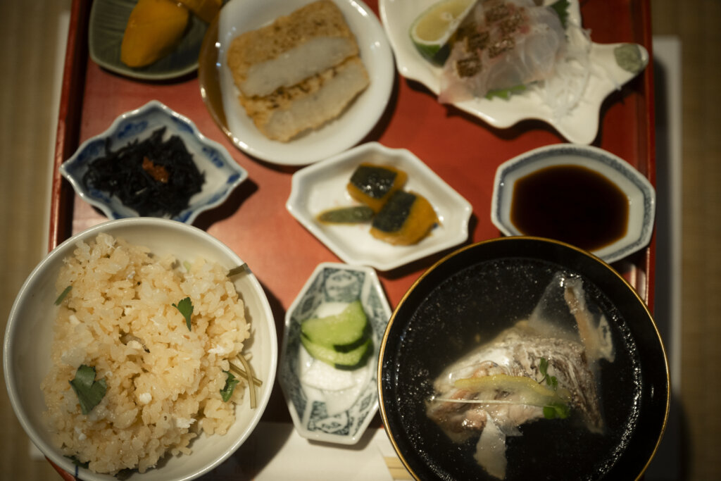 その後、心地よい潮風が香る、三津浜エリアへ。このエリアは、古くは松山の海の玄関口として栄えた港町で、近代建築や古民家などレトロな雰囲気が多く、そこに魅力を感じ、移住される方が多いエリアです。昼食は、松山の郷土料理「鯛めし」を堪能。松山の鯛めしは、丸ごと一匹の鯛をご飯とともに炊き上げていて、ご飯に鯛の旨味が染み込んでいます。松山ならではのグルメを楽しみました。